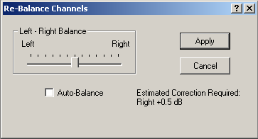 Wave Corrector measures the average amplitude of the left and right channels to provide an estimate of any imbalance that might be present. Please remember however that stereo recordings can have a deliberate imbalance between channels so this information should be treated with caution.