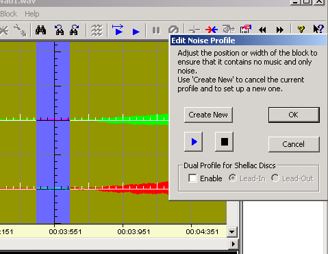 Note, the noise profile block must be in the range between 0.1 and 1.0 seconds. The program will not let you select a block outside this range.